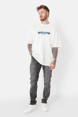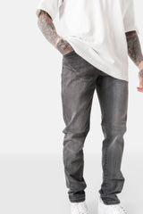 Stamped logo on a leather patch at the back of the waist, side pockets, back pockets, buttoned fastening, belt loop.