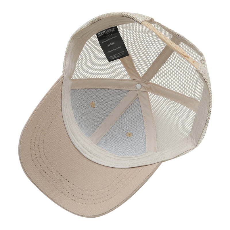Visière courbée, taille ajustable par une patte de serrage, bandeau anti-transpirant à l'arrière.