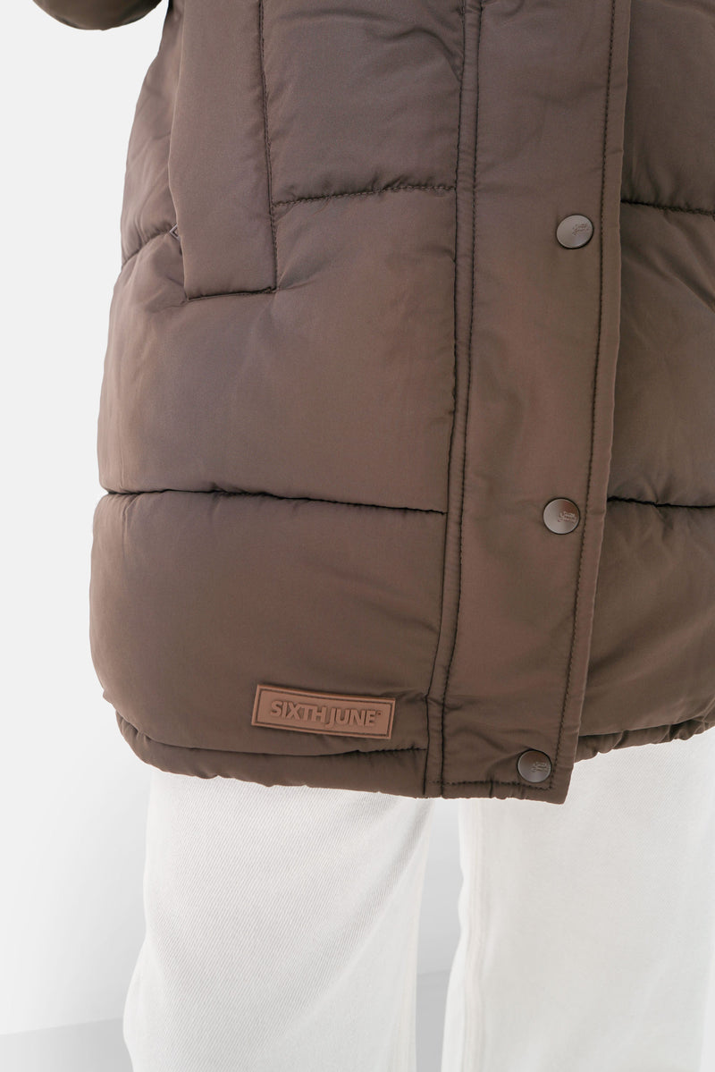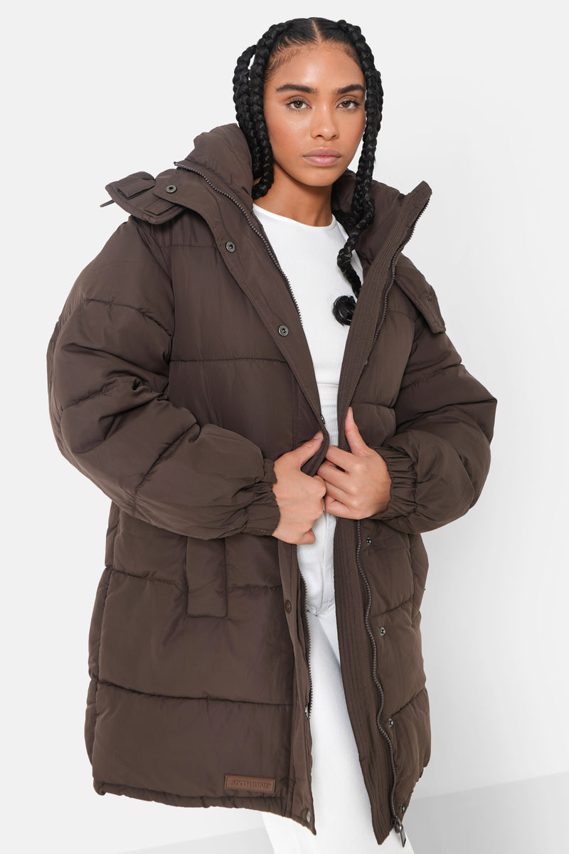 Doudoune longue oversize Marron