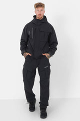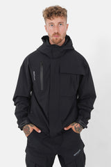 Poches latérales boutonnées, poche intérieure, logo au niveau de l'épaule, QR Code et écritures en bas sur le côté gauche, fermeture zippée et boutonnée, matière légère, doublure (100% polyester).