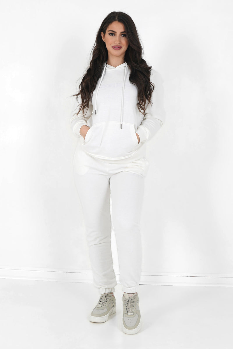 Jogging + sweat capuche logo gommé Blanc