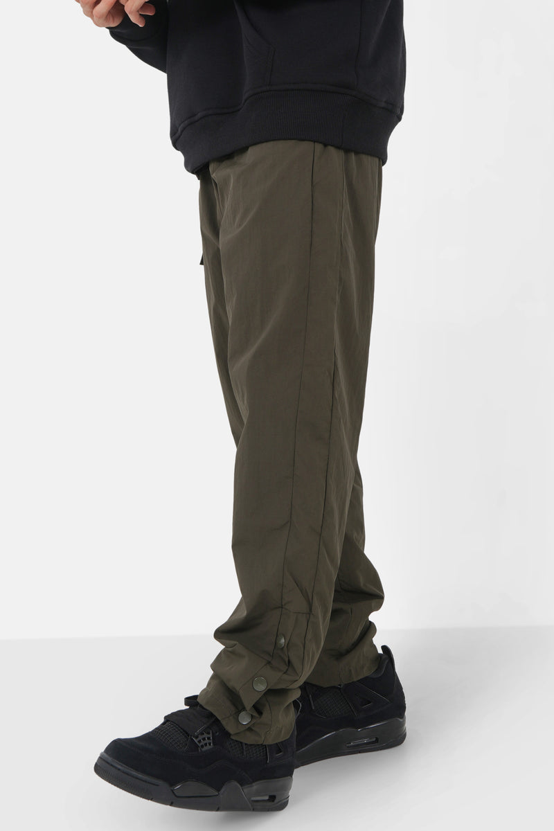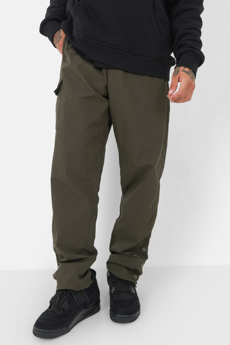 Logo brodé sur la poche cargo à droite, taille élastique avec fermeture à zip et bouton, poches latérales, poches arrières.