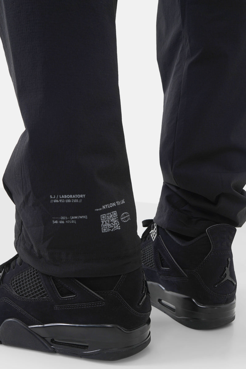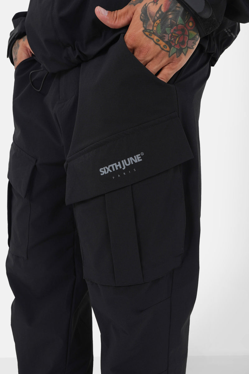 Poches cargo, logo sur l'une des poches, détails avec QR Code au niveau de la cheville.