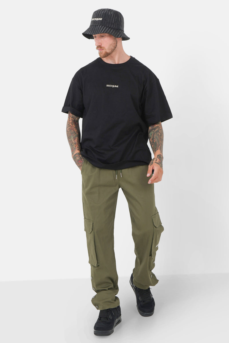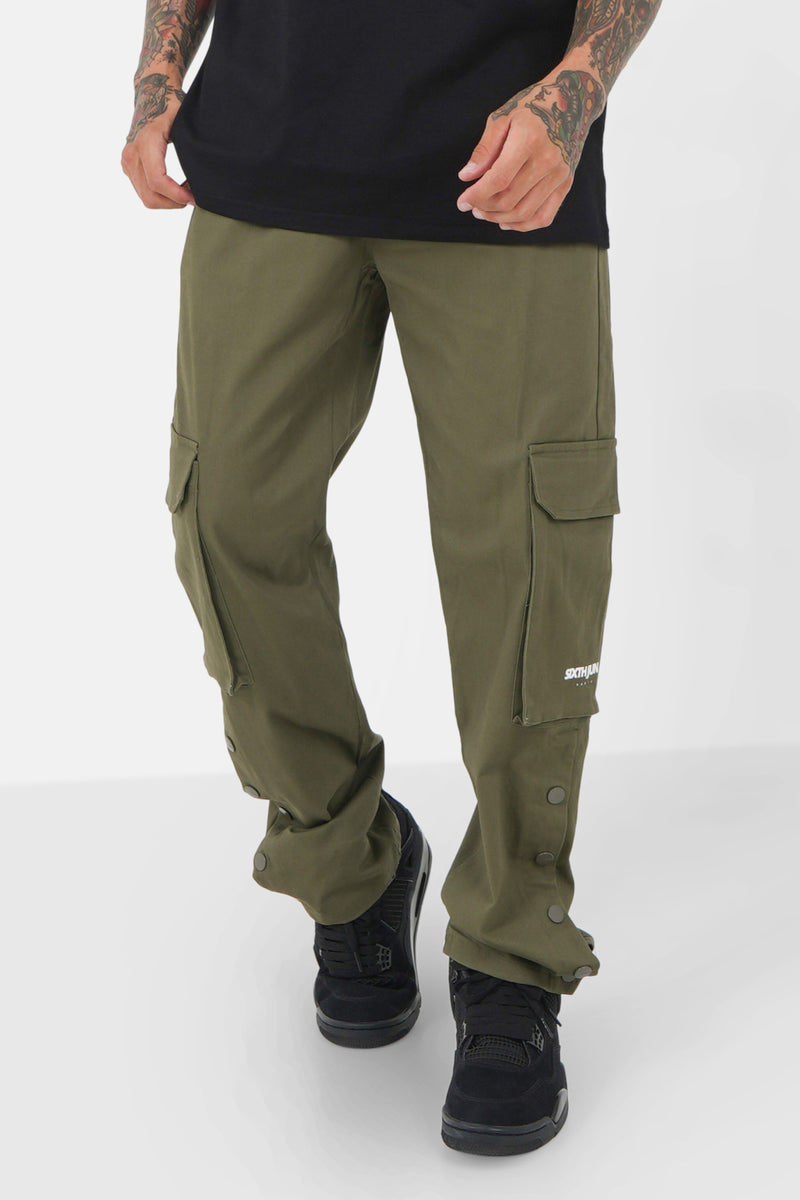 Poches cargo avec fermeture à rabats sur les côtés, poches plaquées à l'arrière, taille élastique avec cordon de serrage.