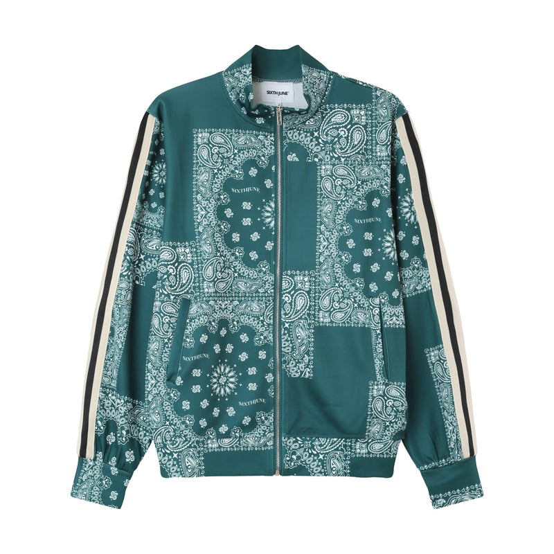 Bande latérale bicolore, fermeture à zip, poches à l'avant, poignets resserrés.
