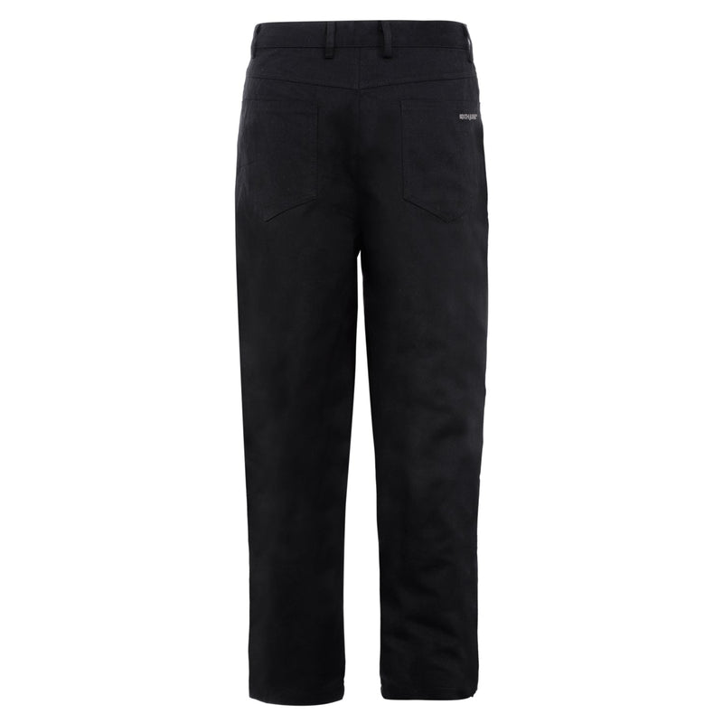 Poches latérales, poches plaquées à l'arrière, logo brodé sur la poche arrière droite, taille non élastique, boutonnée et zippée.