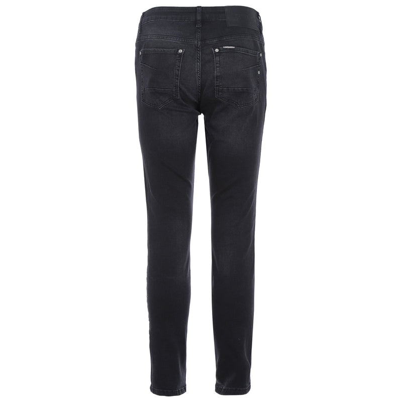 Logo sur patch effet cuir à l'arrière de la taille, poches latérales poches arrières, fermeture boutonnée, passant pour ceinture.