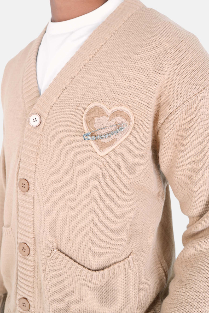Coeur brodé sur la poitrine avec une épingle amovible.