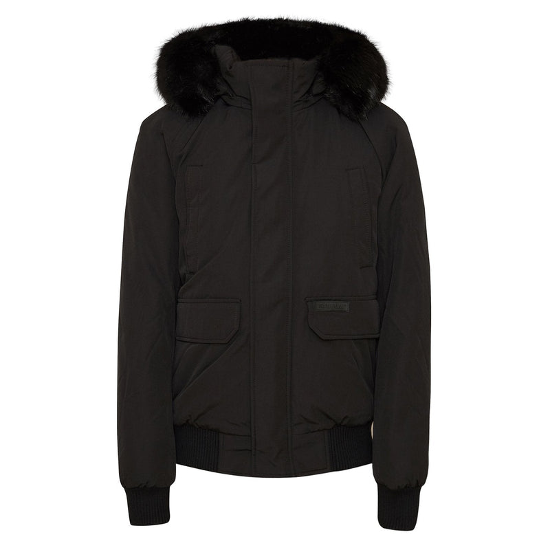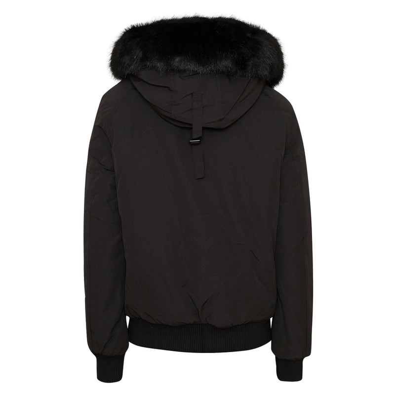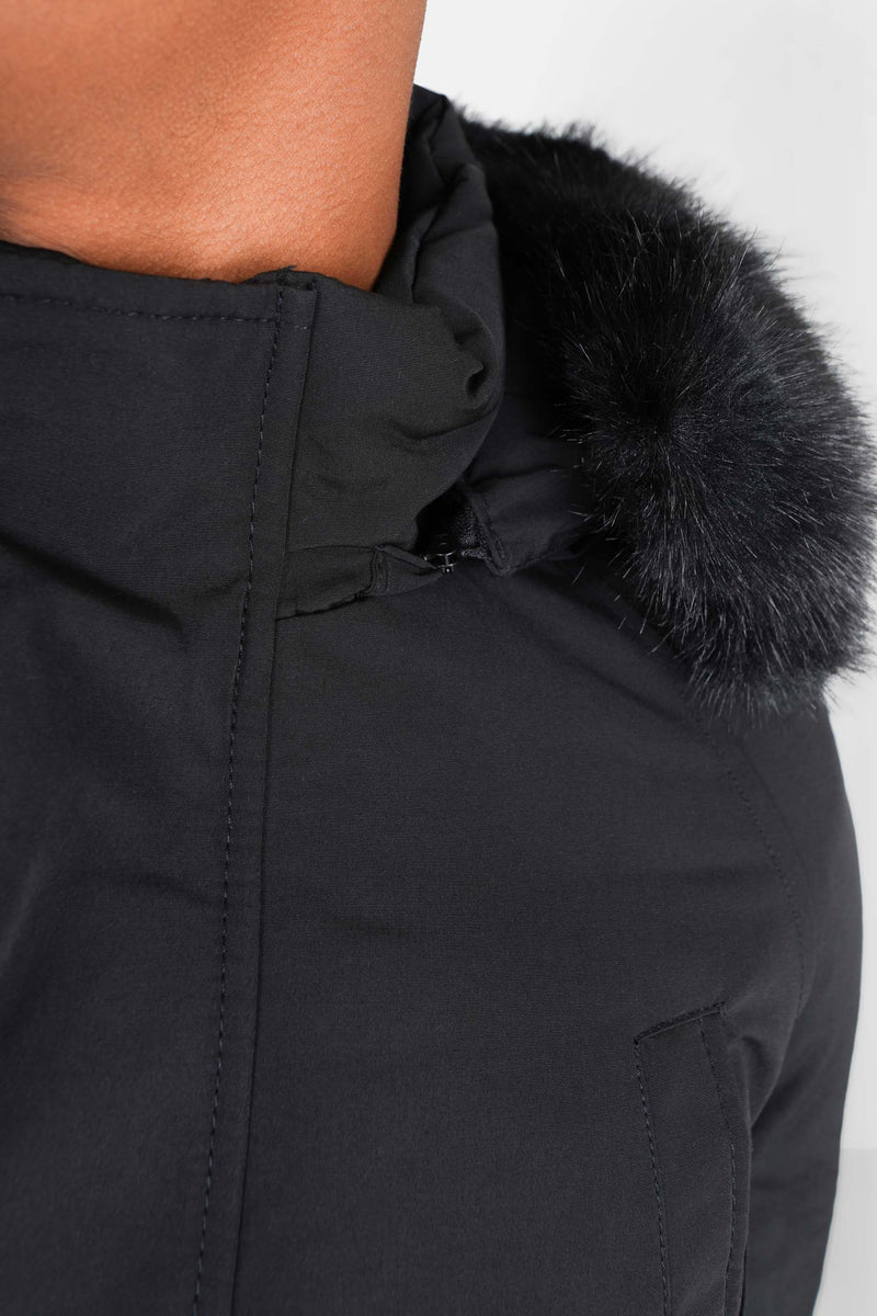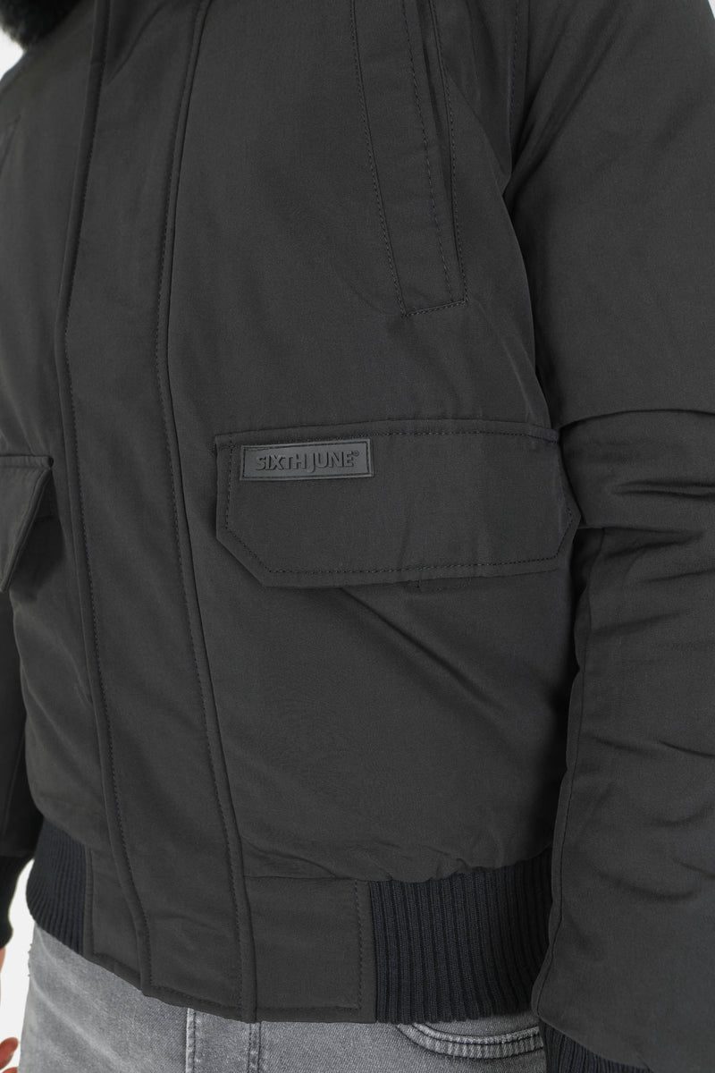 Capuche amovible avec patte de serrage à l'arrière et avec fausse fourrure amovible. Grandes poches à l'avant avec fermeture à aimant, poches avec fermeture à aimant au niveau de la poitrine, fermeture centrale à zip et aimantée, bords-côtes aux poignets et taille élastique.