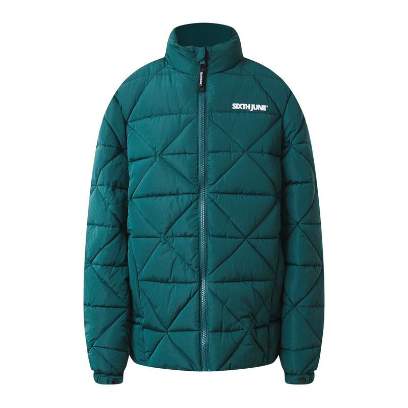 Matelassage triangle, poches latérales à zip, logo brodé près de l'épaule.