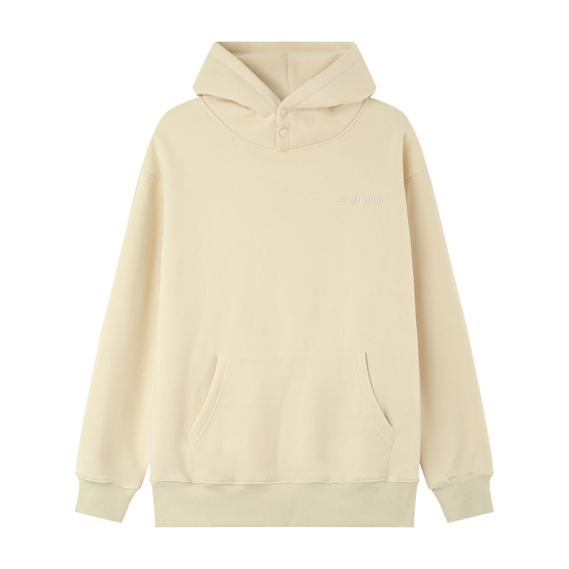 Matière douce et épaisse, molletonnée à l'intérieur, poches kangourou, 2 boutons à pression au niveau du col capuche, bords-côtes aux poignets et à la taille.