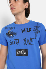 Inscriptions et motifs à l'avant (crew, wild, Sixth June), inscription "CREW" à l'arrière, base arrondie, col rond.