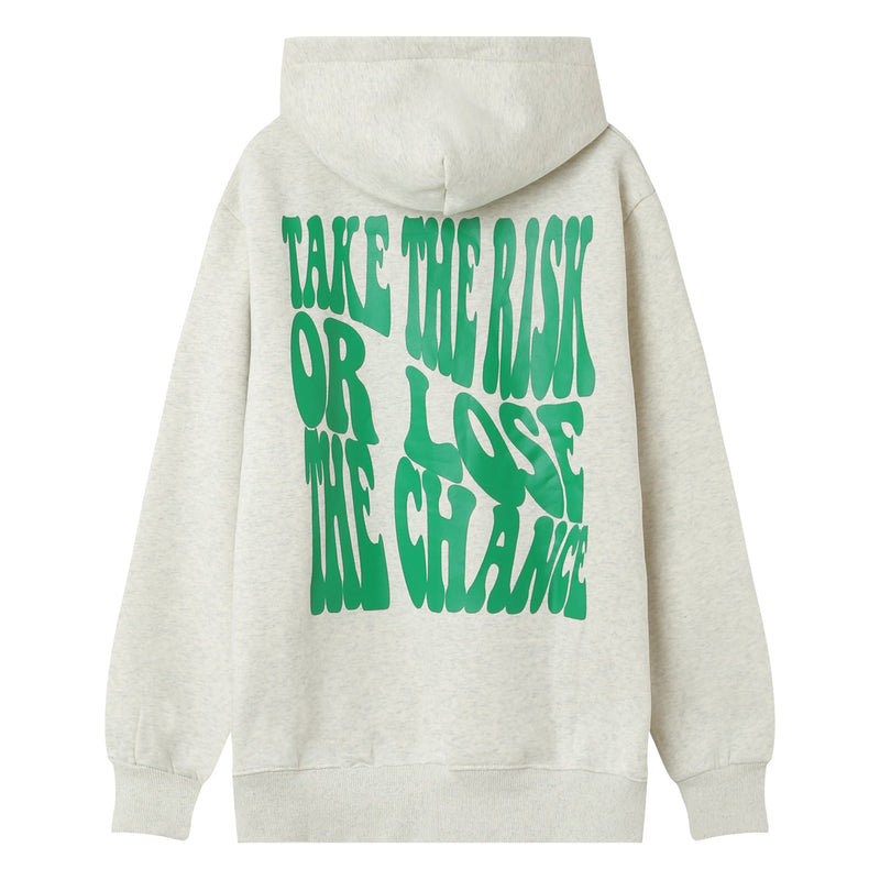 Imprimé rétro dans le dos: take the risk or lose the chance, matière douce et épaisse, intérieur molletonné.