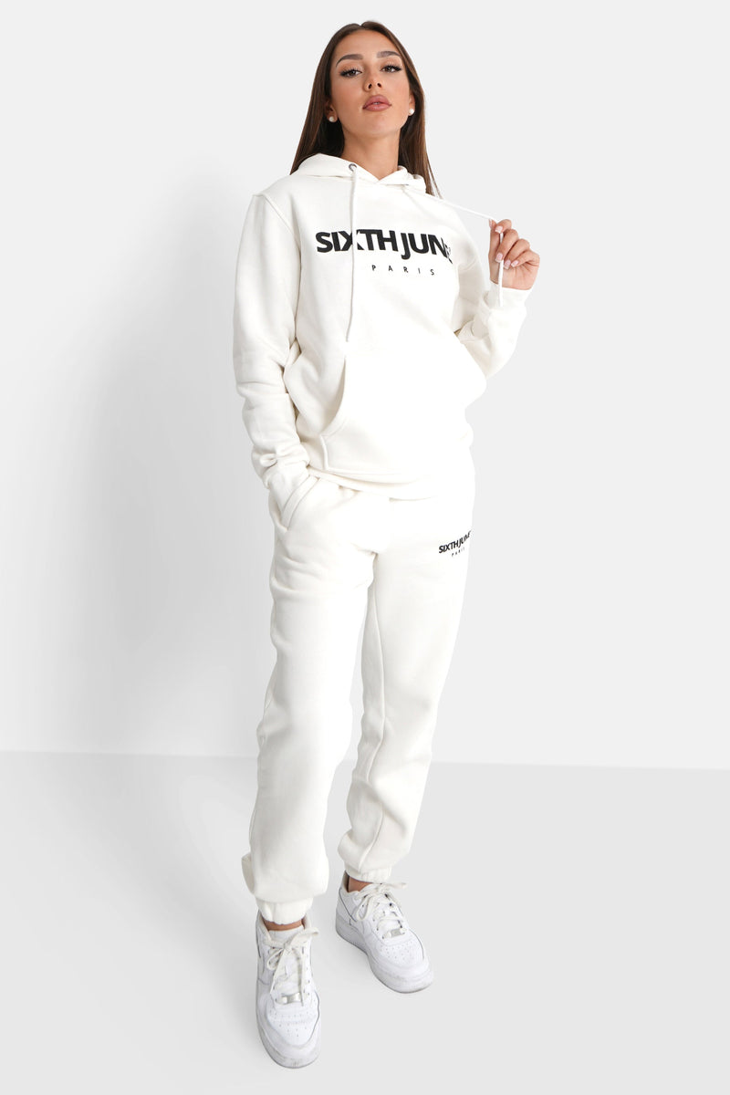 Tissu épais, molletonné, Sixth June Paris brodé en grand sur le torse, capuche avec cordons de serrage.