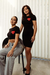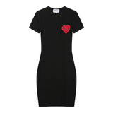 Coeur rouge brodé au niveau de la poitrine avec une épingle métallique amovible, inscription SIXTH JUNE sur l'épingle.