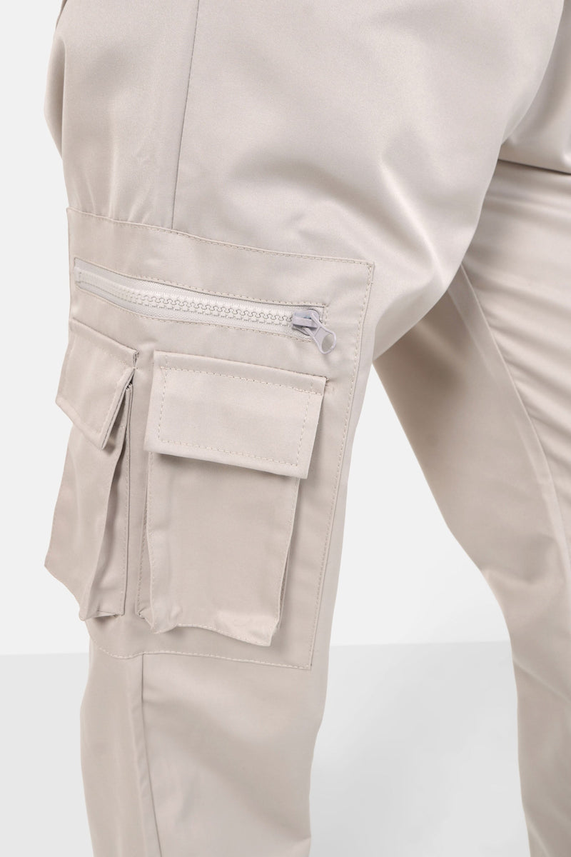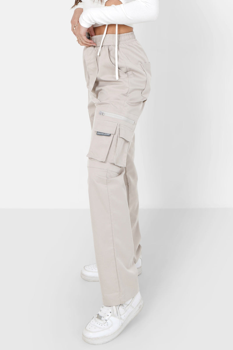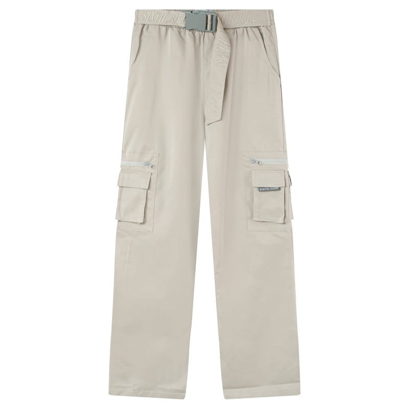 Tissu effet satiné, double poche à rabats et poche zippée de chaque côté, languette tissée Sixth June sur l'une des poches côté gauche.