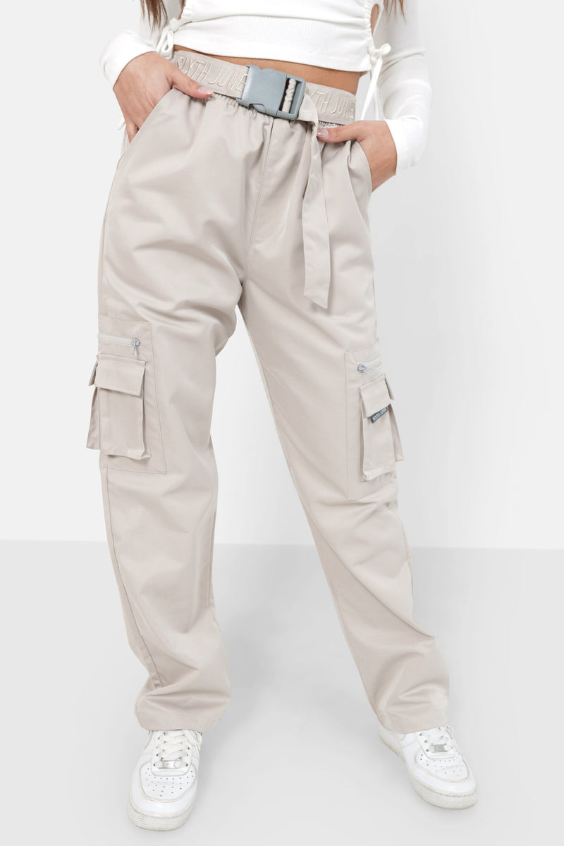 Ceinture à boucle intégrée, brodée Sixth June, taille élastique, poches arrières.
