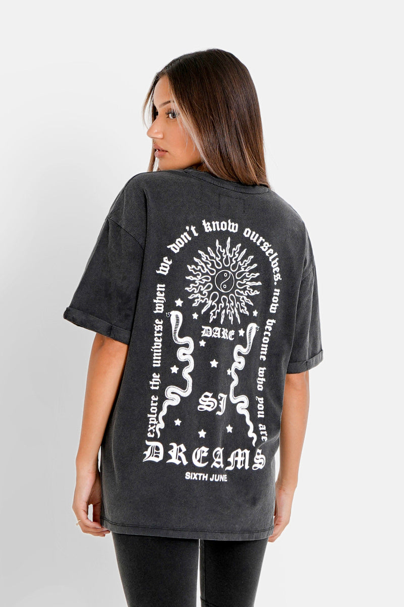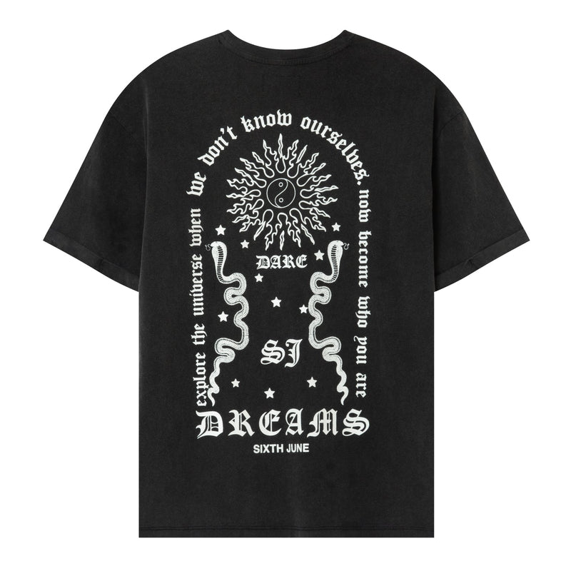 Imprimé dans le dos avec des serpents, soleil, yin-yang, dreams imprimé à l'avant.