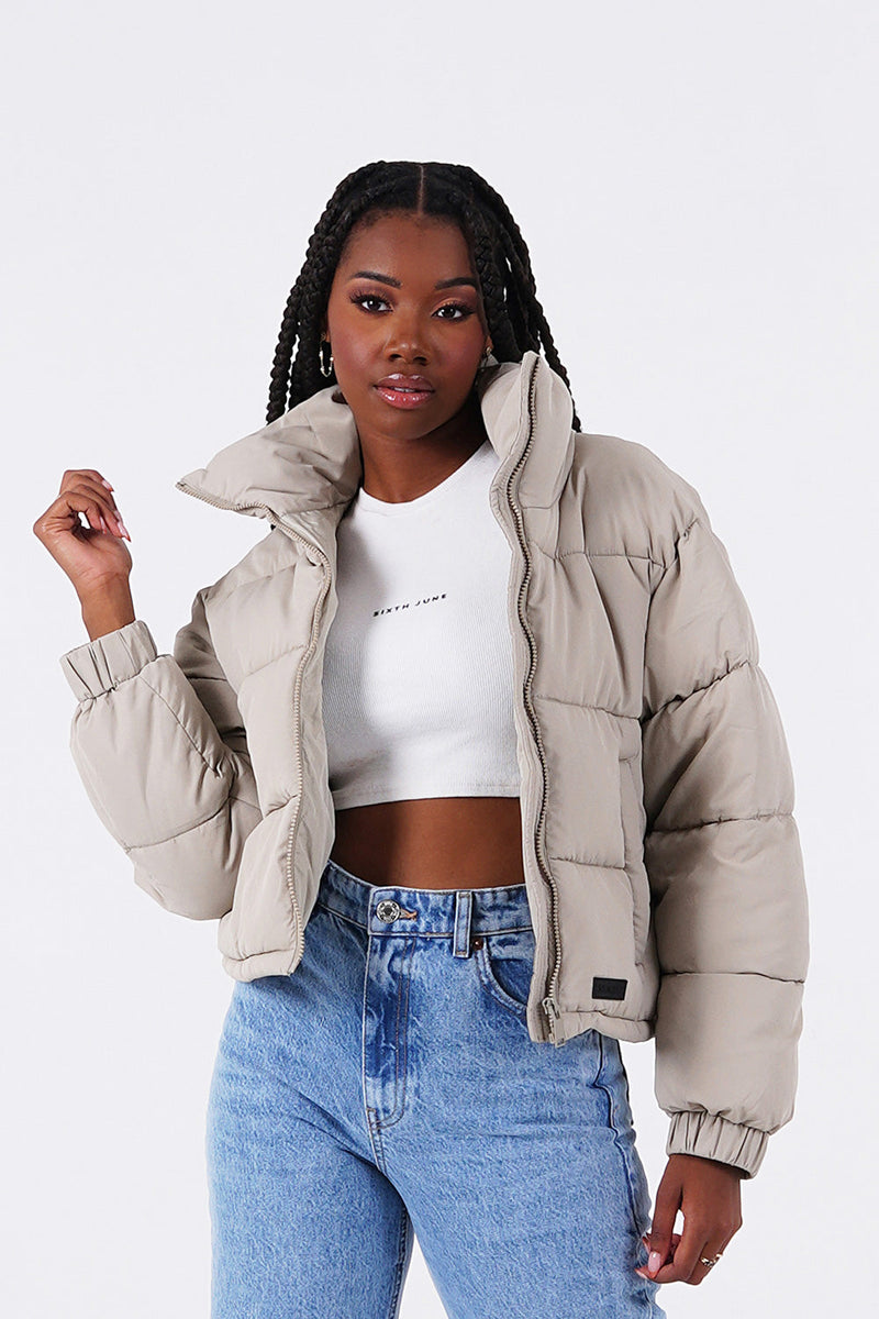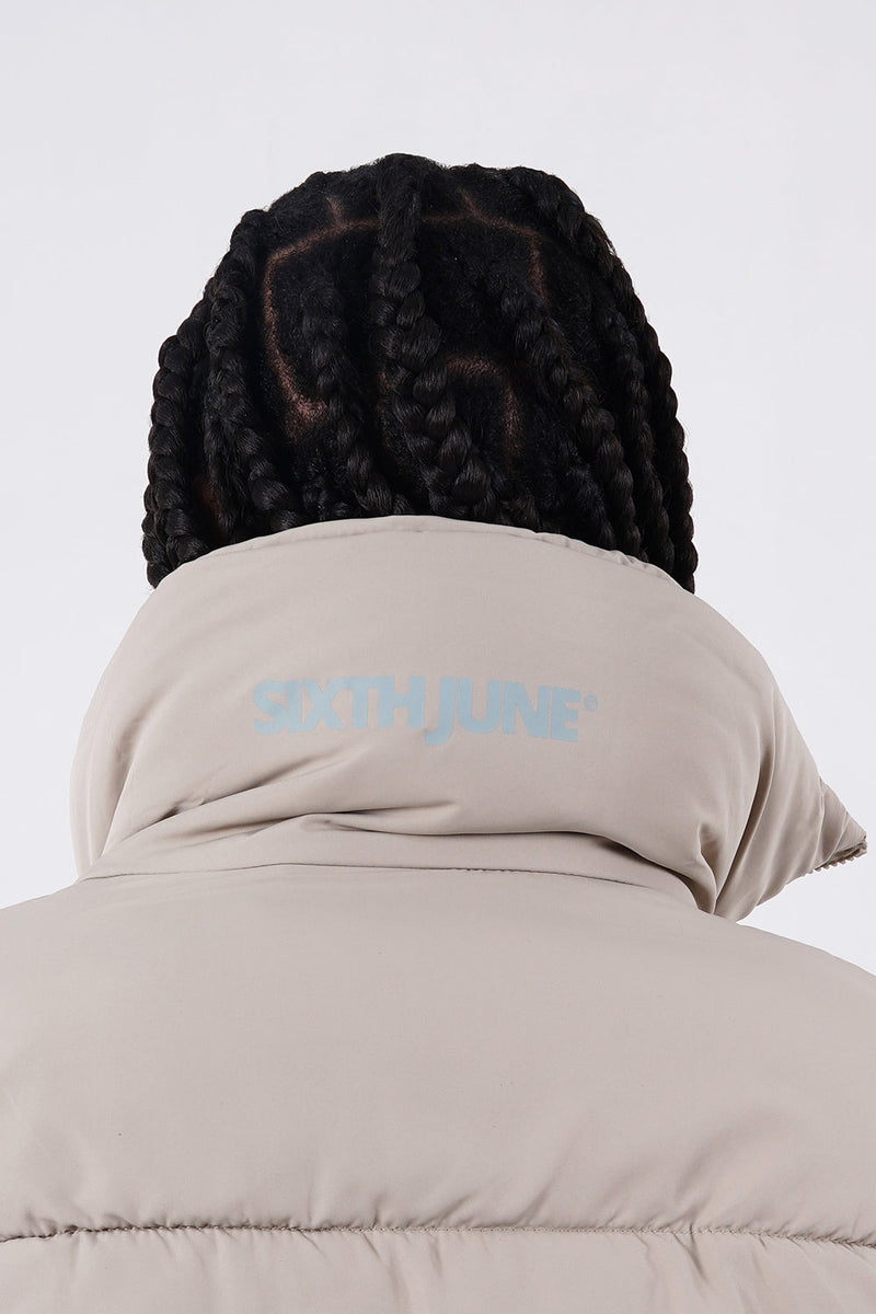 Effet matelassé et rembourré, col montant avec imprimé SIXTH JUNE au niveau de la nuque. Poches latérales avec fermeture à zip, poche intérieure, fermeture centrale à zip, élastique au niveau des poignets et de la taille.