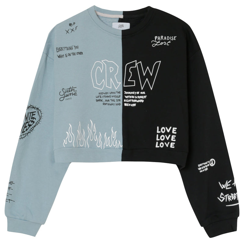 Sweat court Crew bicolore Bleu
