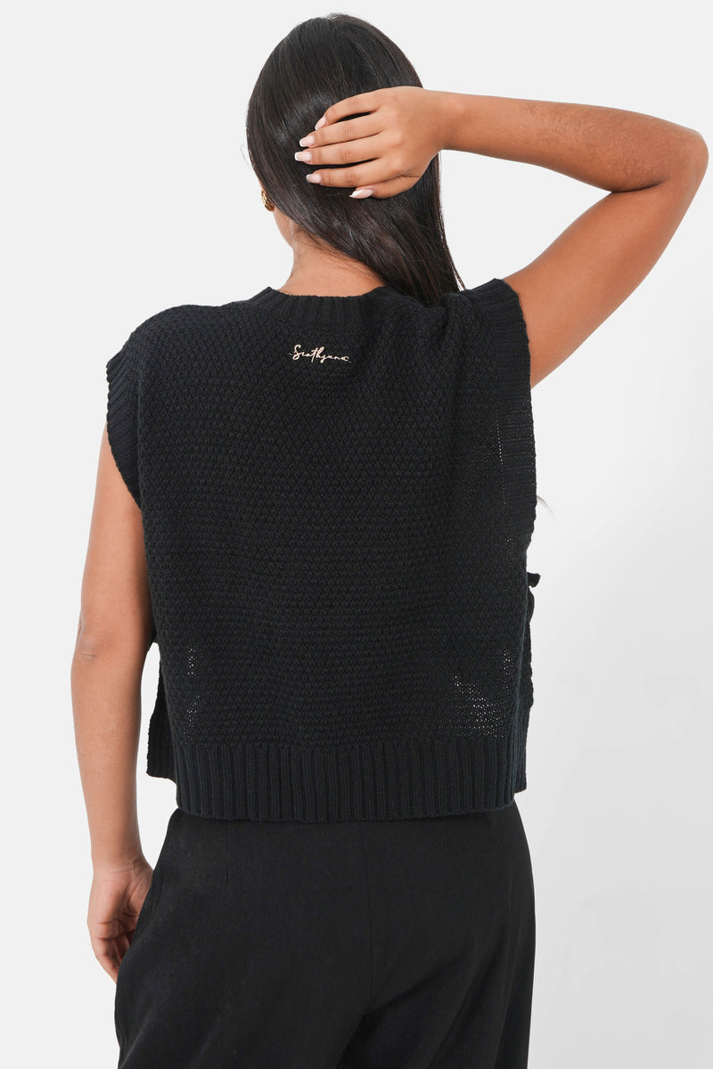 Logo bijou à l'arrière, torsades à l'avant, maille fine.