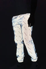 Herren-Jogginghose der Marke Sixth June. Allover-Print „Sixth June“. Vollreflektierendes Material (glänzender Effekt im Licht). Gummizug am Saum, Kordelzug in der Taille, zwei Seitentaschen, zwei Gesäßtaschen. Klassischer Schnitt. Schwarzes Modell.