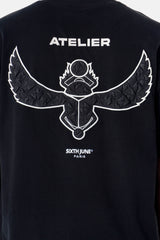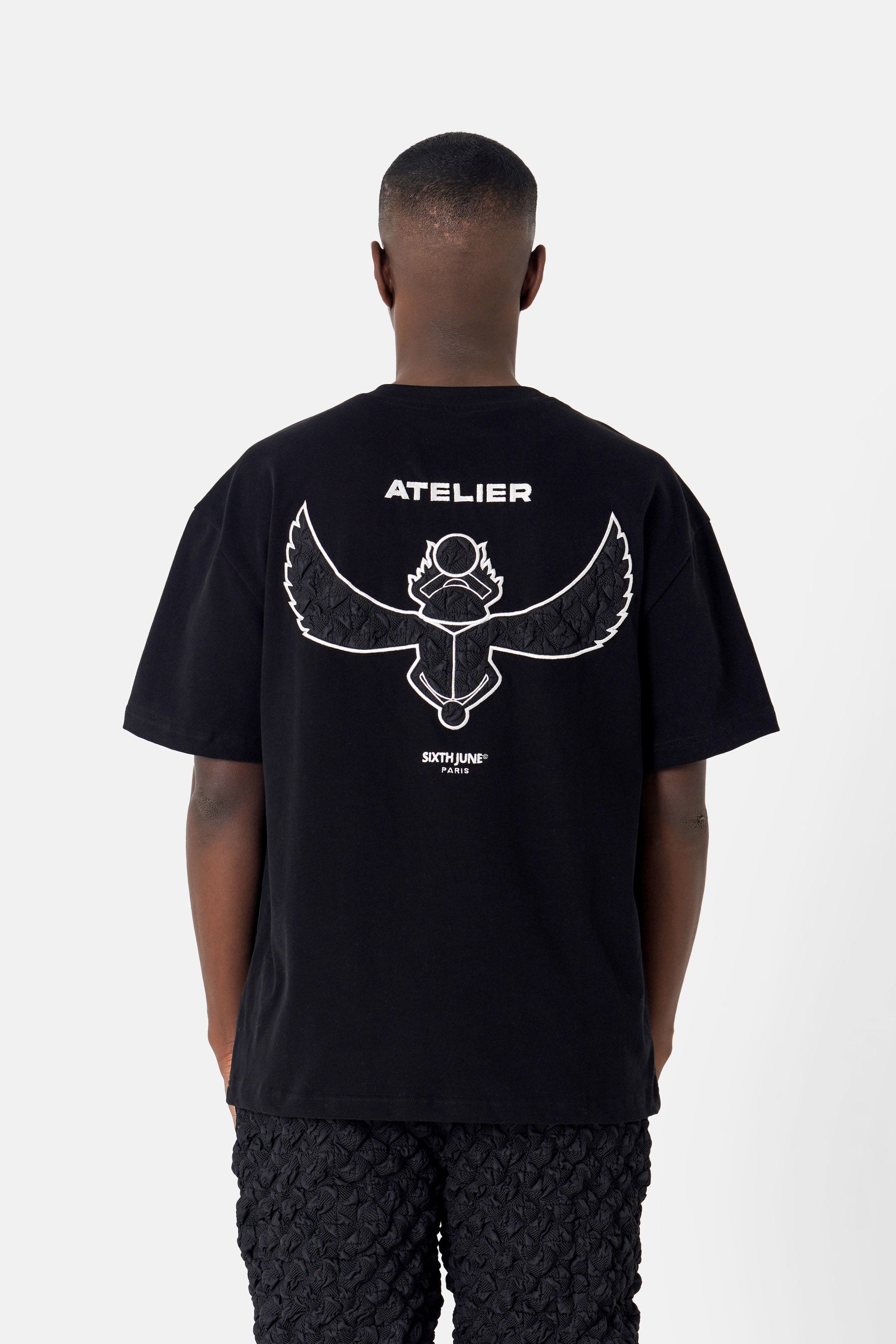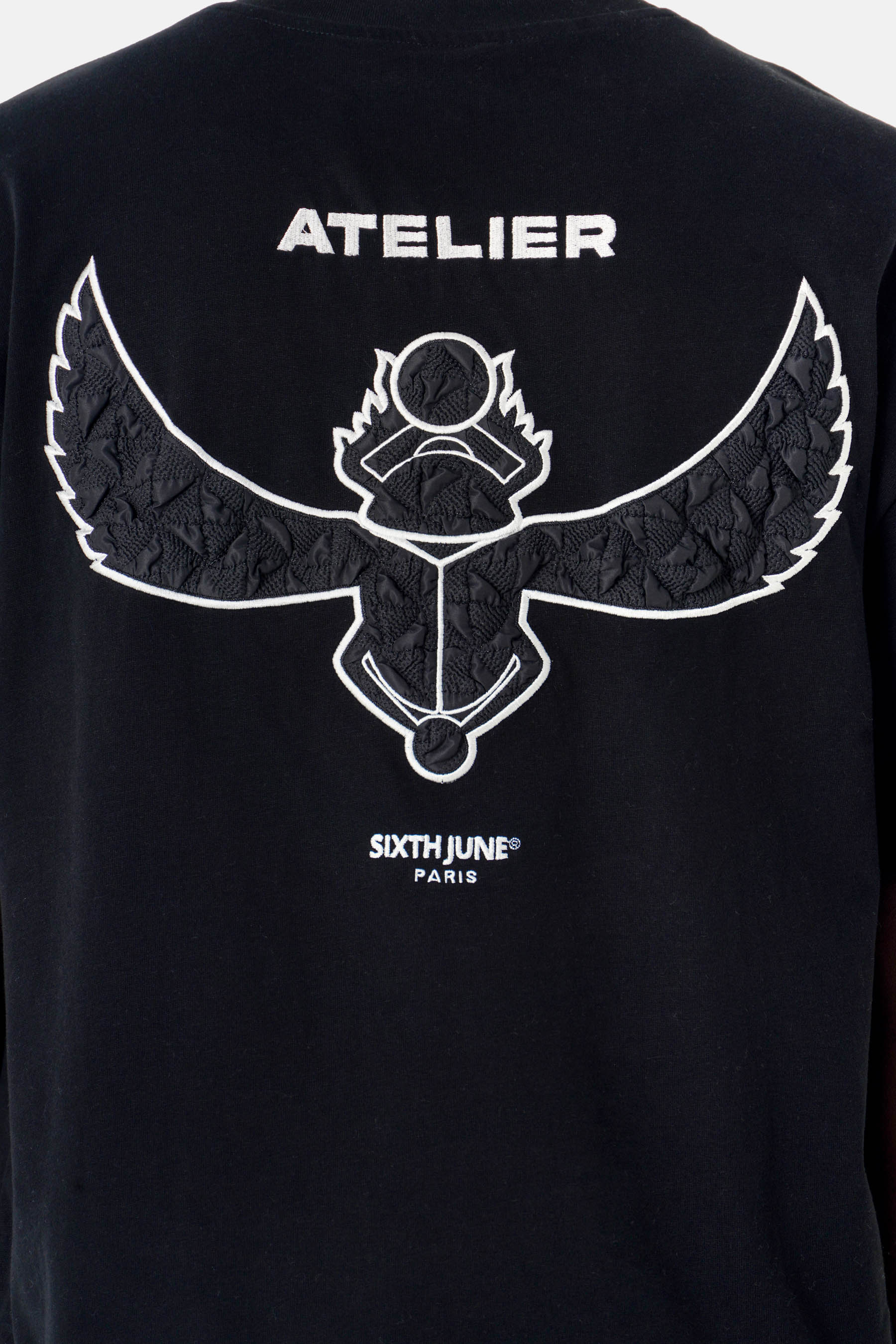 Stickerei und strukturierter Käferdruck auf der Rückseite.