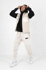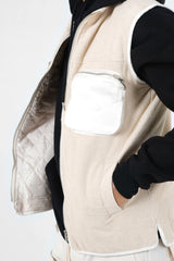 Ärmellose Jacke aus Bi-Material Hellbeige