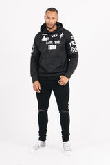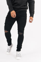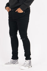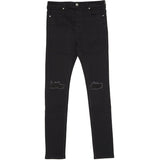 Destroyed-Effekt, ausgefranst an den Knien und am linken Oberschenkel. Vorder- und Gesäßtaschen, Knopfverschluss.