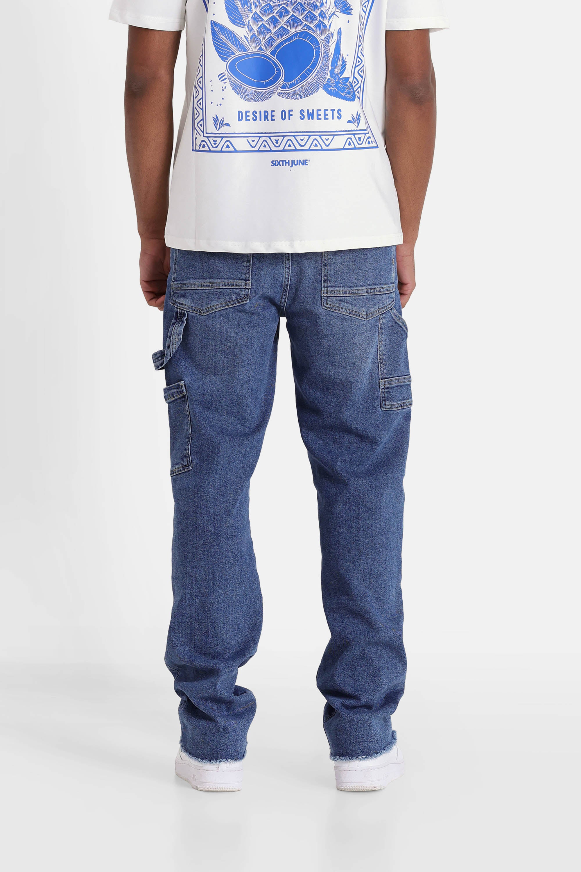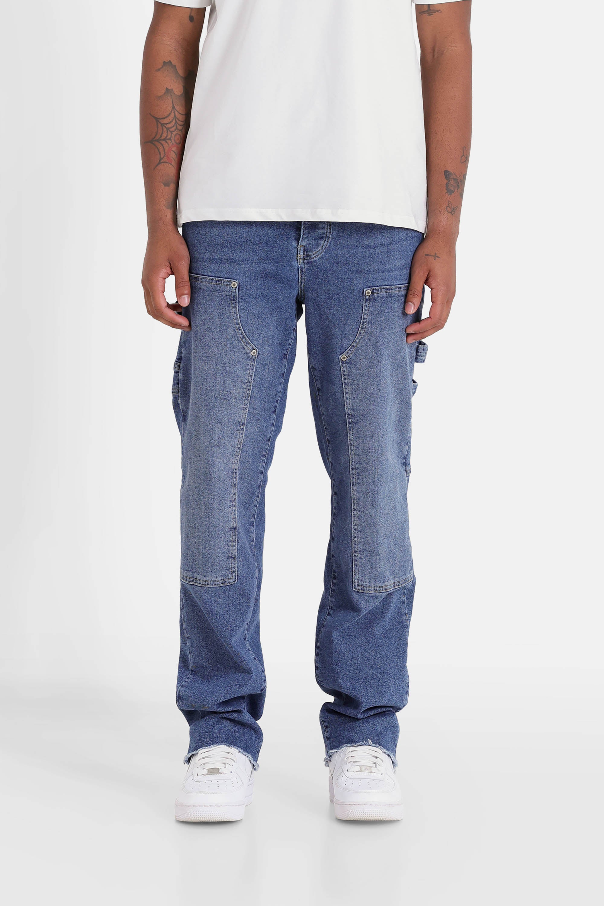 Zimmermannsstil mit Vorderpassen, Vordertaschen und Gesäßtaschen.