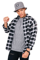 Sixth June-Hemd für Herren mit Karo- und Ringdruck (nicht abnehmbar) auf den Schultern. Weiter Schnitt, 3/4-Ärmel, überschnittene Schultern und Knopfverschluss. Schwarz-weißes Muster.