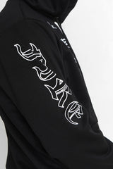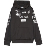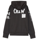 Aufschriften und Muster auf der Vorder- und Rückseite (Crew, Wild, Sixth June). Kängurutasche, Kapuze mit Kordelzug.