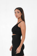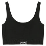Geripptes Material, „SIXTH JUNE Steetstyle“-Druck unterhalb der Brust im Gothic-Stil. Dünne Träger, elastisch unter der Brust.