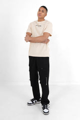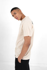 Geschwungenes Logo-T-Shirt vorne und hinten Beige