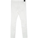 Vorne schmal zulaufend, an mehreren Stellen innen mit Einsätzen versehen, sodass die Haut nicht sichtbar ist. Vorder- und Gesäßtaschen, Knopfverschluss.
