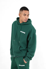 Übergroßes Kapuzensweatshirt mit ausgefallenem Logo. Dunkelgrün