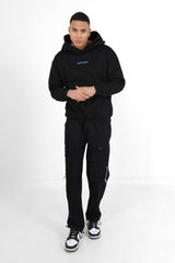 Schwarzes Kapuzen-Sweatshirt im Print-Look