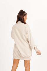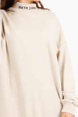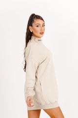 Beiges Sweatshirtkleid mit geripptem Kragen