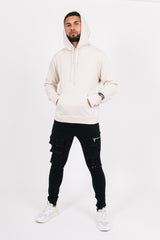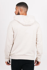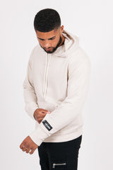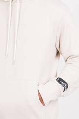 Langärmliges Kapuzensweatshirt der Marke Sixth June für Herren. Vordertasche. Sixth June-Patch auf dem linken Arm, Kordelzug an der Kapuze. Reichlich Drehmoment. Beigefarbenes Modell.