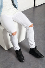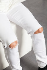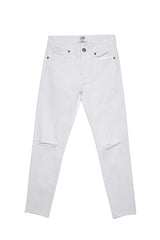 Jeansweiß Sixth June Herren. Destroy-Effekt an den Knien. 7/8 Ernte. Schmaler Schnitt.