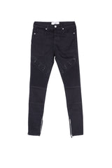 Herrenjeans von Sixth June mit Schnürung und Bikerpasse an den Knien. Enger Schnitt, sehr körpernah. Schwarzes Modell.