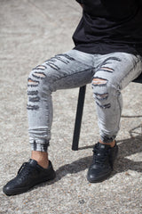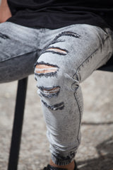 Grau gewaschene Destroyed-Jeans M1921HDE