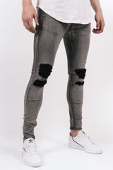 Sixth June-Jeans für Herren mit Destroyed-Effekt an den Knien. Enger Schnitt (nah am Körper) und Taschen vorne und hinten. Dunkelgraues Modell.