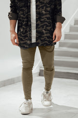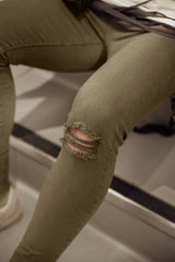 Khakifarbene Destroyed-Knee-Jeans M2448HDE
