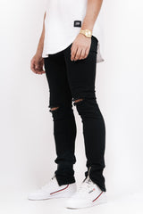 Sixth June-Jeans für Herren mit Reißverschluss vorne an den Knöcheln. Enger Schnitt (sehr körpernah), an den Knien zerstört, Seiten- und Gesäßtaschen. Schwarzes Modell.