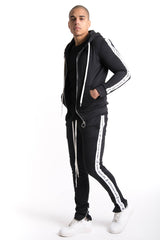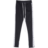 Herren-Jogginghose von Sixth June mit bedruckten Bändern von Sixth June Paris an den Beinen. Schmale Passform, Innenreißverschlüsse an den Knöcheln und übergroße Kordelzüge. Schwarzes Modell mit weißen Streifen.
