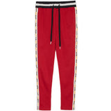 Jogginghose von Sixth June für Herren. Schmale Passform, zweifarbige Bänder entlang der Beine mit Aufdruck „Sixth June“ und „Propaganda“ entlang der Bänder, Seitentaschen, Gesäßtaschen, Kordelzug und Gummizug in der Taille. Rotes Modell.