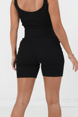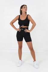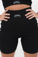 Geripptes Material, „SIXTH JUNE Streetstyle“-Aufdruck auf gesticktem Patch an der Taille. Elastische Taille.