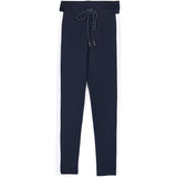 Damen-Leggings von Sixth June mit Bändern an den Beinen. Enge Passform, hohe Taille, dicker Gummizug in der Taille, künstliche Gesäßtaschen und übergroßer Kordelzug. Schwarzes Modell mit weißen Streifen.