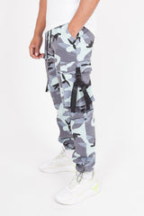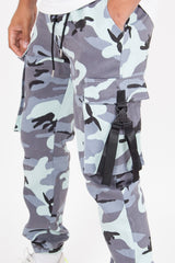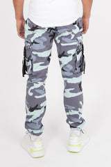 Cargohosen der Marke Sixth June für Herren. Camouflage-Print und große Seitentaschen mit Riemen. Kordelzug in der Taille und verstellbarer Gummizug an den Knöcheln. Klassischer Schnitt. Blaues Modell.